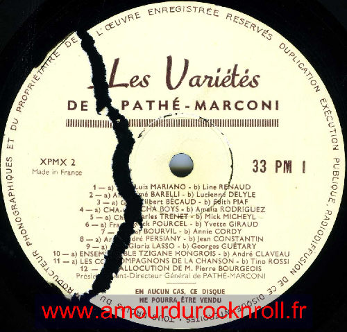 Disque échantillon édité selon Monsieur Pierre BOUGEOIS 50 ans après la production du premier disque PATHÉ qui a eu lieu en 1905 , donc : 1955 pour cette publication promotionnelle qui porte le n° PM 1 .