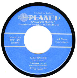 C'EST NOËL ( Pierre Havet - adaptation musicale de Paul Durand ) chant : Carmen Déziel . Chanson enregistrée en France par Maria CANDIDO sur disque POLYDOR 20.926 .