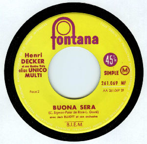 Henri DECKER alias UNICO MULTI sur DISQUE 45 tours PHILIPS Hors Commerce " LOUVIERS CAPITALE DU MICROSILLON " . Tout premier pressage de la toute nouvelle usine PHILIPS de LOUVIERS inaugurée le samedi 21 septembre 1957