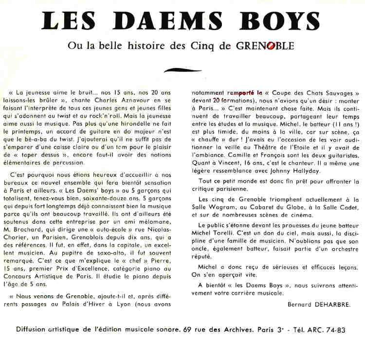Les ROCK SONS , Diplôme du GOLF DROUOT en 1963