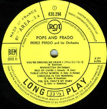 Pantaleon PEREZ PRADO interprète ELSY ELMAMBO , soliste SOLI ( saxophone : ESTO ES FELICITAD avec YVON POVEDA ( chanteuse ) & MAMBO DE L'ESTUDIANTE avec YVON POVEDA et PEREZ PRADO