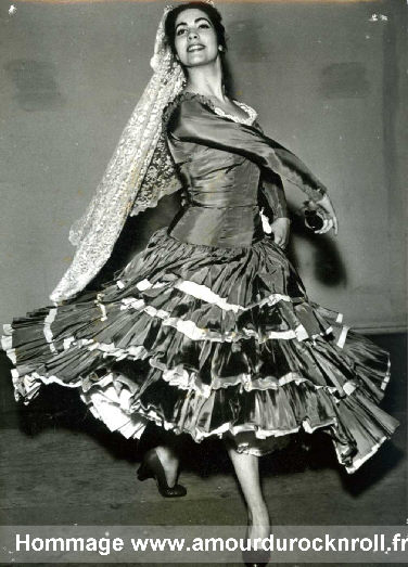 La jeune artiste âgée de 18 ans a été remarquée par PIERRE ARVAY alors qu'elle se produisait au Théatre de l' Etoile dans un spectacle de ballet Espagnol .