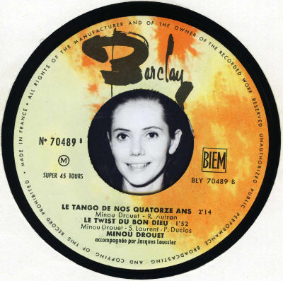 Minou DROUET âgée de 15 ans signe fin 1962 avec Eddie BARCLAY et sort immédiatement un disque ( janvier 1963 ) , contenant la chanson rythmée : " LE TWIST DU BON DIEU " .
